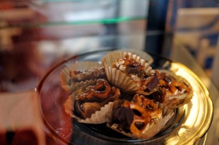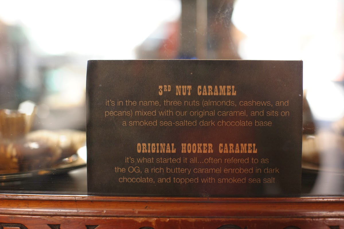 “We’re about aesthetics.” That’s what Matt told me when we discussed a potential photo project with Hook, the owner and creator of Hooker’s. This is clear. Check out the cocoa nibs on top of that white-chocolate dipped caramel.