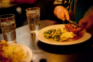 Rebecca went for the Chicken-Fried Chicken, with mashed potatoes and Brussels sprouts. I believe it was generally satisfying.