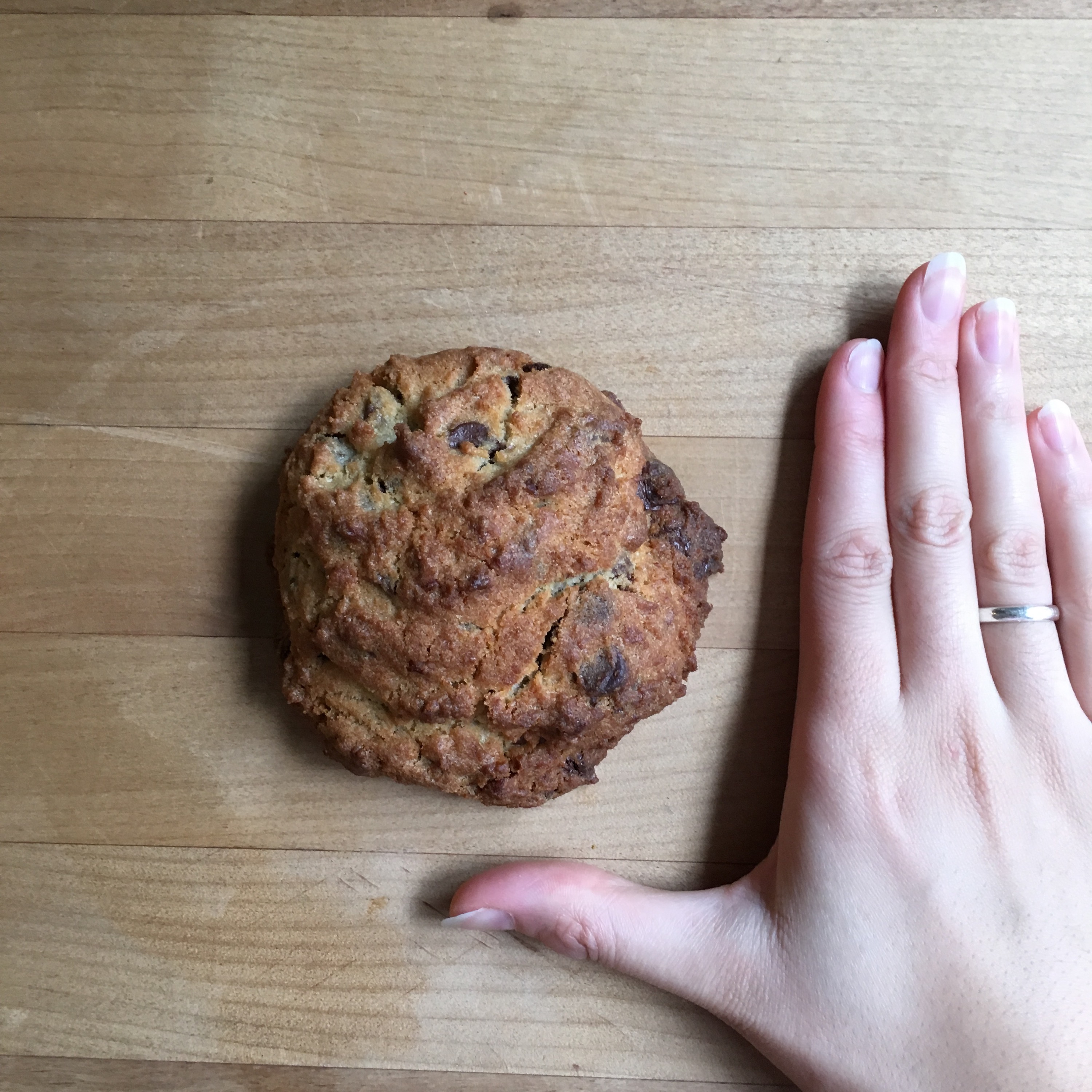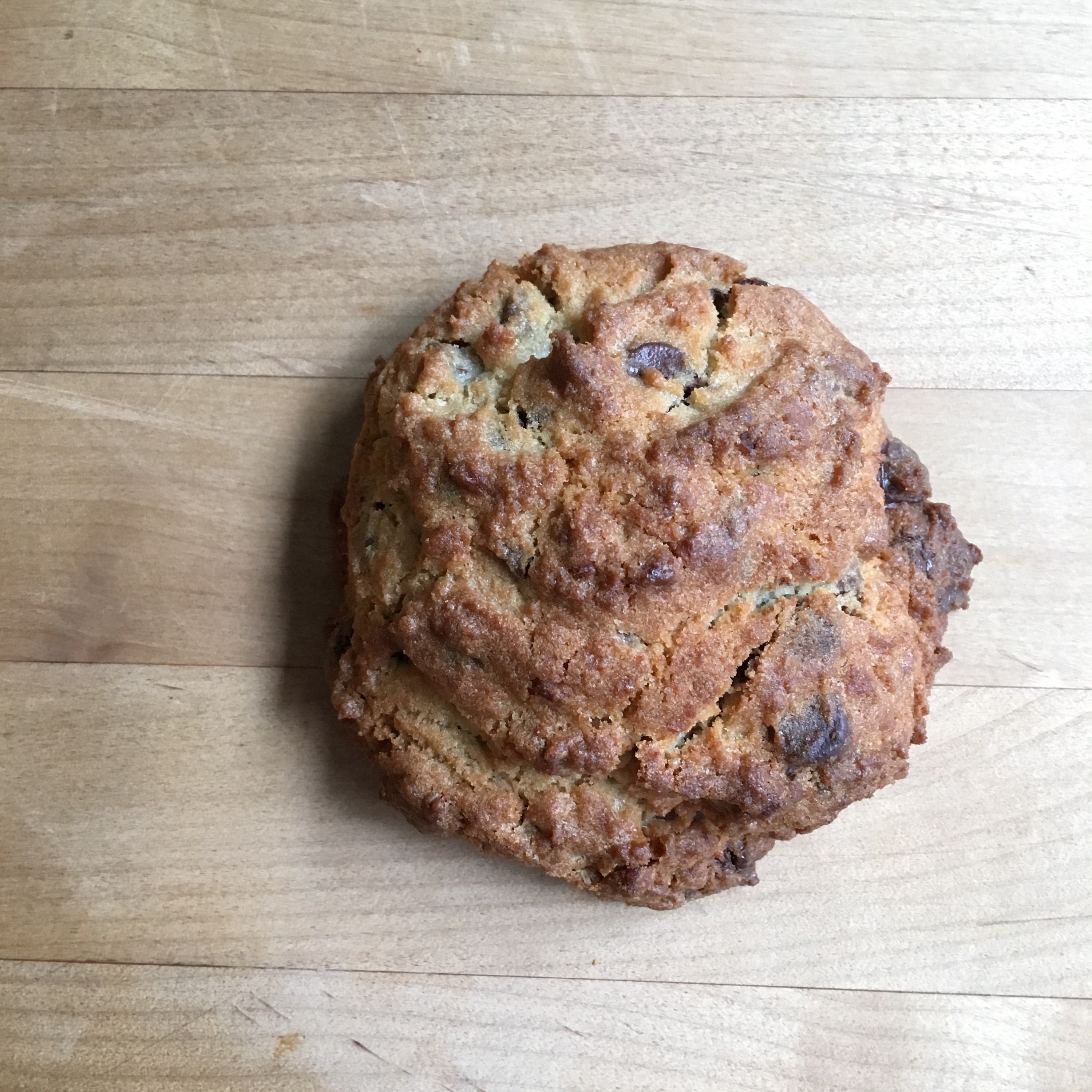 After waiting in a 30 minute line at the time of opening, she gets into the office and hands me the bag of what looks like scones, and feels like rocks.There’s a solid thud when I put the paper bag by my laptop. I was warned that some are intimidated by the nearly half-pound cookie, but I was ready.