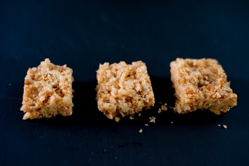 So what does “brown butter” mean? The part of the butter that’s browning is the milk solids, once they’ve separated from the butterfat in the beginning of heating process. You know when you melt butter in the microwave and white seafoam-type stuff floats around the bowl? That’s the milk solids. When you heat butter past this point on the stove, the milk solids sink to the bottom and start to toast up and brown. This is the milk solids caramelizing, creating an amazing smell in your kitchen that most describe as “nutty”, while I personally prefer butterscotchy. It’s just so warm and enveloping, sometimes I feel like I shouldn’t go any further with the recipe; I can stop right there. During this process of browning, the water in the butter also evaporates, creating the bubbling and spitting that you’ll experience. Once the milk bits have browned, you have brown butter.