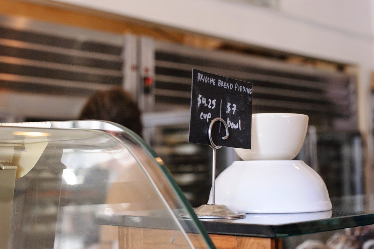 Big popular bakery and a guy with cool glasses.