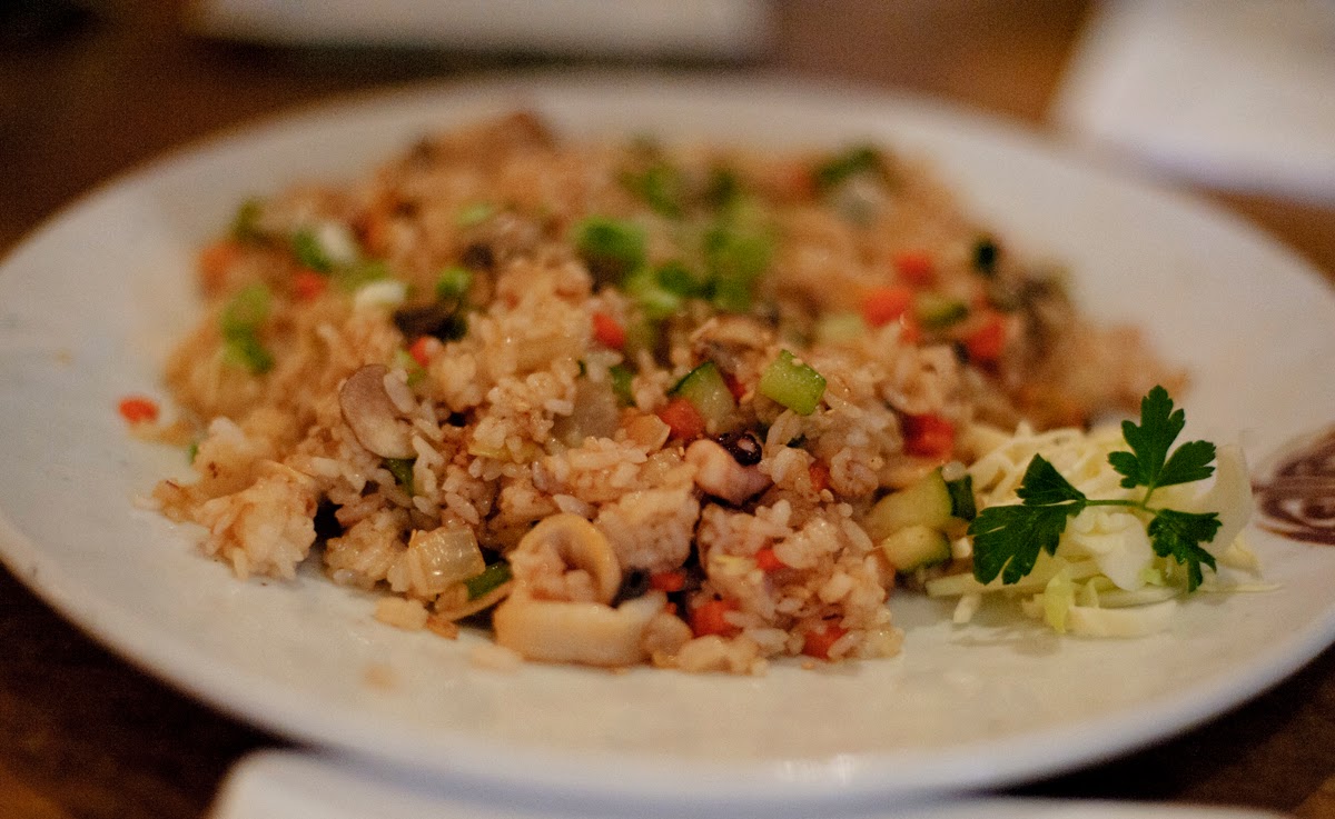 Last week, Jake and I got to spend some time in Providence, Rhode Island! I love love Providence, and there are too many restaurants to eat the same thing twice. Walking down Westminster we found “Teriyaki and Korean House”. What really caught our attention was the “moffle” advertised on the window. The Moffle: a combination of Belgian waffle and the Japanese rice cake mochi. Of course we had to try it. I was tempted to eat one for lunch, but we went with a seafood fried rice first.