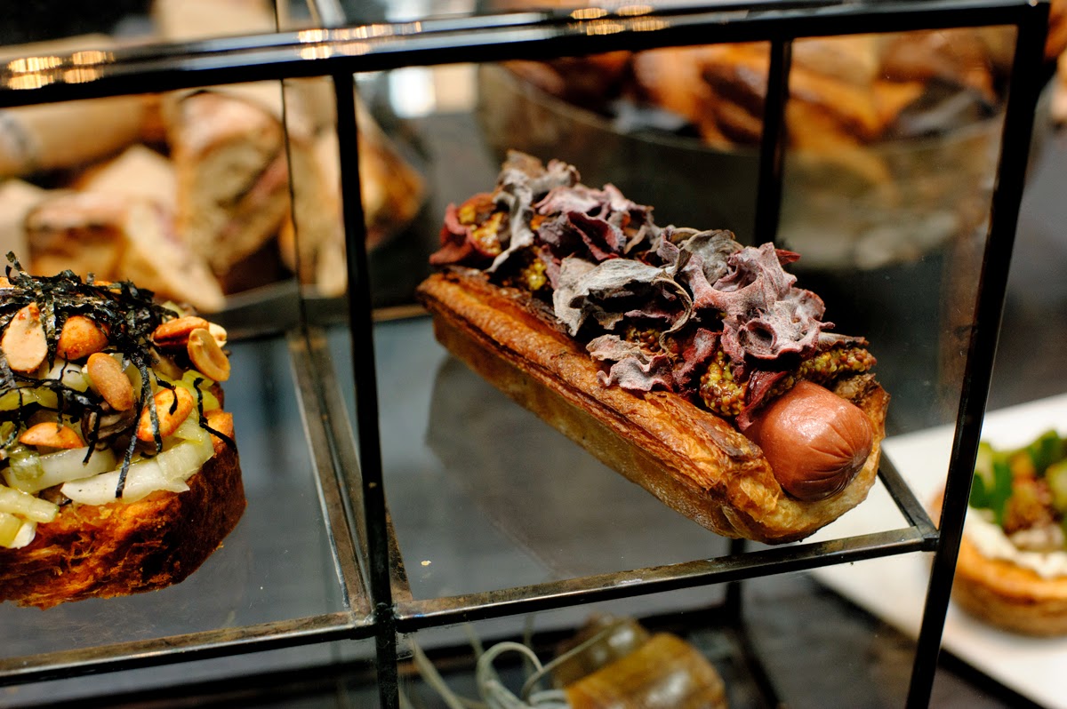 | Haute Dog: Beef frank, mustard seed croissant, salt & vinegar beet chips. $6.50. Now they’re just getting ridiculous. Or no? Maybe it’s incredible. |