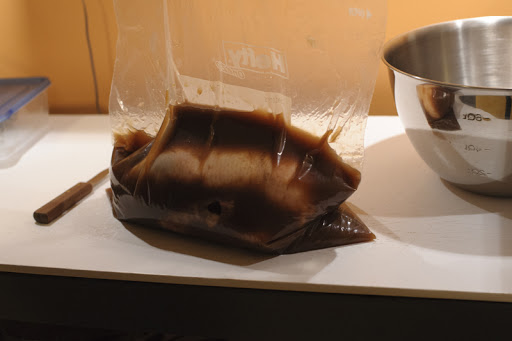 Yellow cake is traditionally used, but…chocolate! So I suppose both my mom and I made this…my mom made all the parts, and I combined them.
