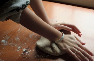 Add the dry ingredients gradually, while alternating with the milk or water, so the batter ends up at a good consistency – not as thin as regular brownie batter, but not wet cement. If you have a food processor, you can do it all in there. If not, a wooden spoon does just fine.