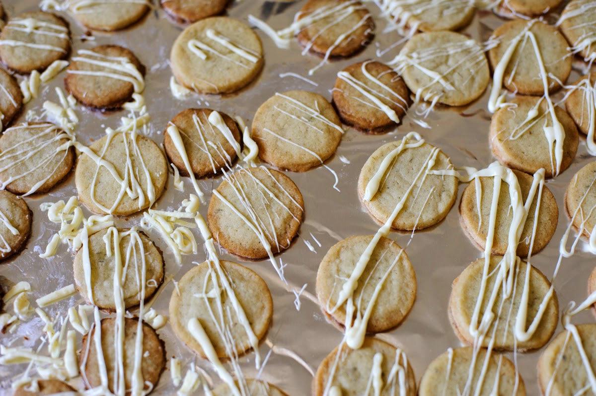 At half power, microwave the chips in a bowl in 30 second intervals. When fully melted, place in a sandwich bag with a corner cut out. Drizzle quickly over lined-up shortbread ~ this may take a few tries but you’ll get the hang of it! The chocolate (or white) will make it on somehow.
